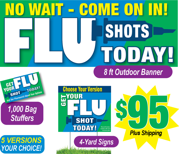 These Flu Kits are designed to get attention and alert local residents to this important service you provide, with five versions from which to choose! You'll receive: